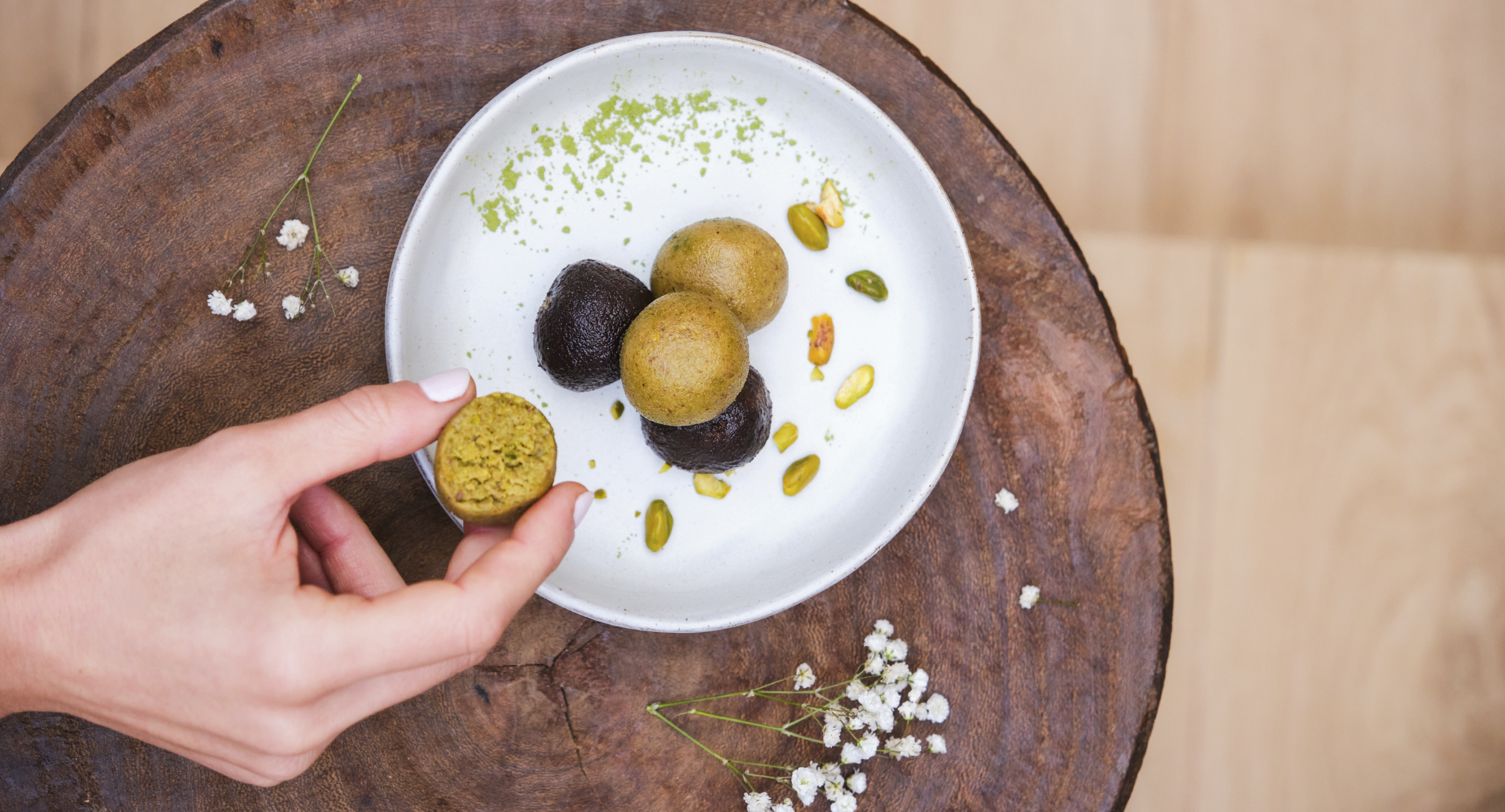 - Superfoods: Pistachos mondados y té matcha culinario, que aporta un extra de antioxidantes y un color vibrante.